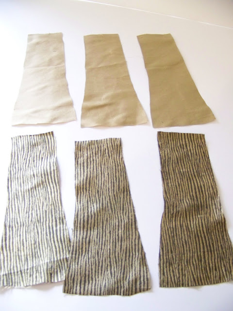 This lampshade had six sections, so I needed to cut 3 pieces of each of my two different fabrics.