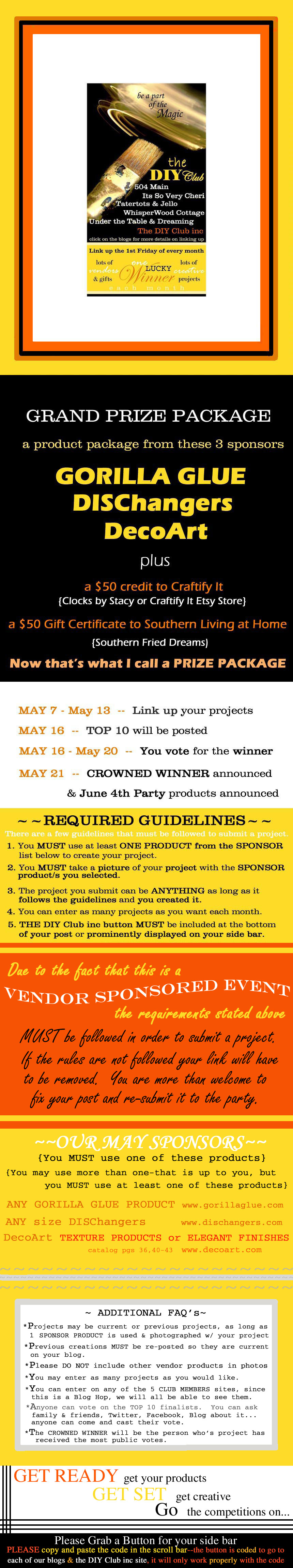 If you would like to become a DIY Club Sponsor or contribute to the monthly giveaways please contact Cheri@ItsSoVeryCheri.com
