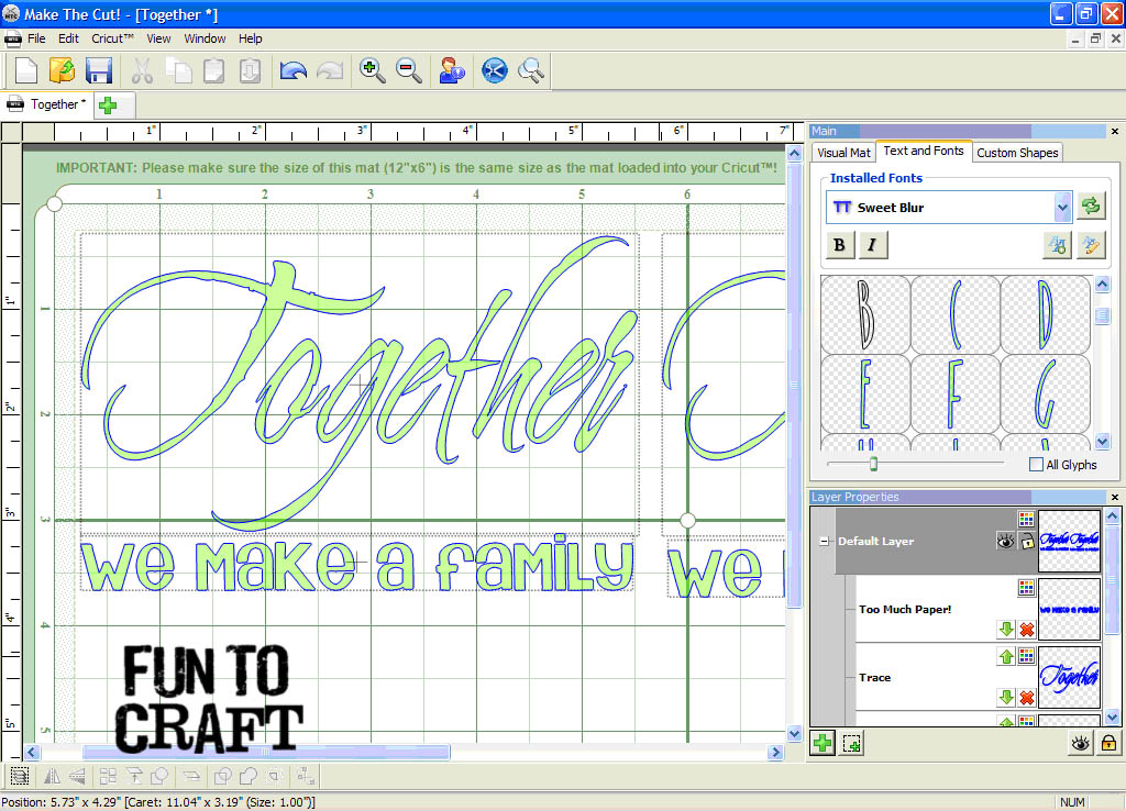 Once the word ‘together’ was in place, then I lined up the second word strip and stuck it to the plate once it was positioned correctly.