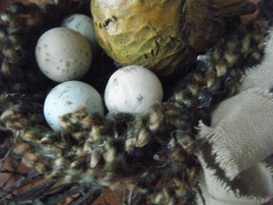 I made the birdsnest out of yarn–it is a multi colored yarn