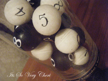 to cut out all the numbers, then ModPodged them on to the balls I had painted.