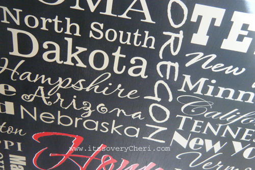I’ve seen lots of subway art lately but I really like your design much better than most. The font to fit the state idea, works and it has such a meaningful message, as most of us, have a special place in our heart that we call HOME!