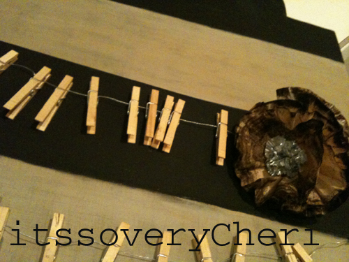 I saw someone make something similar and thought they were so cute and I can not find them now. If it was you please contact me and I will give you credit. I made 2 adorable flowers to attach to my message center. One is made from the natural Coffee Filters. I used 3 –I just dabbed the edges in a brown rubber stamp. The center is a foil cupcake liner and Iattached it together with a chocolate brown chenille pipe cleaner–the big fuzzy rustic looking ones.