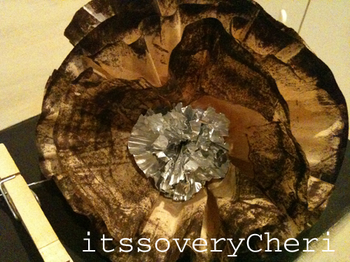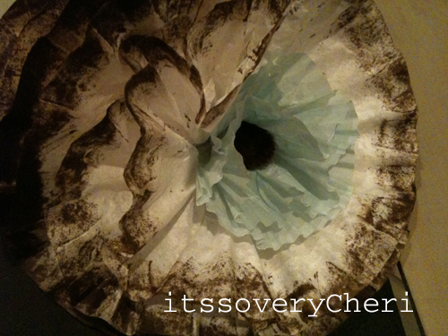 This one is with the white coffee filters–same process, just a aqua cupcake liner (I used 2 for a little deeper color).