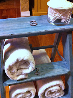 that is sooo cute! i love the idea of numbering it and the towels look so pretty rolled up on it.