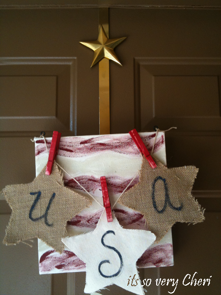 I love patriotic decor. I made a cute Canvas Corp door decoration for the front door to celebrate Memorial Day.