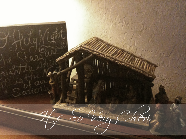 The sign you made is great, but it’s the manger I have to comment on. I have the exact same one. The Man & I bought it 42 years ago for our first Christmas together after we married. It has been some place in our home every Christmas since then. When our first grandchildren (twin girls) were toddling around, getting into things, I kept finding Baby Jesus or some of the sheep, in some very strange places. After that particular Christmas, I glue-gunned all the pieces in place & just store it that way. For many years, I tried to add some light to the manger (because it is pretty dark) & finally this year, got one of the popular battery-powered LED short strings & hid it among the straw. It’s one of the first items I display each year & plan to do so for many years to come.