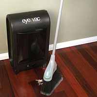 The Eye Vac is a 1200-watt stationary vacuum. You plug it in and just sweep the debris into the path of its always-on infrared sensors, and the Eye-Vac will vacuum it away instantly. It turns off automatically when finished. When the indicator light tells you the canister is full you dump the canister. There is no need for extra vac bags eliminating extra “plastic” trash and I like that I am doing something GREEN when it comes to trash.