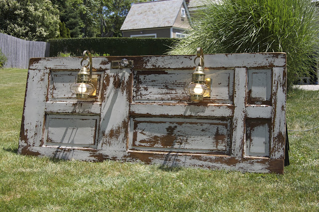 She took an old door, added lighting and created a wonderful vintage headboard.