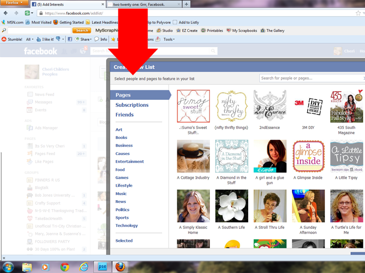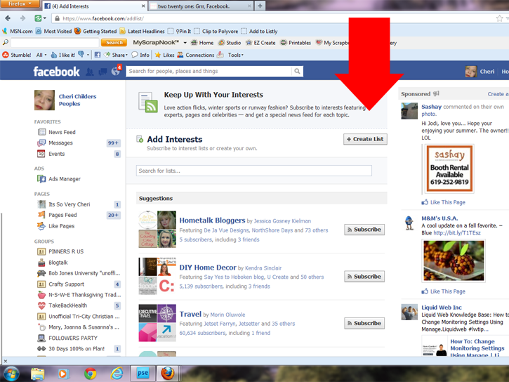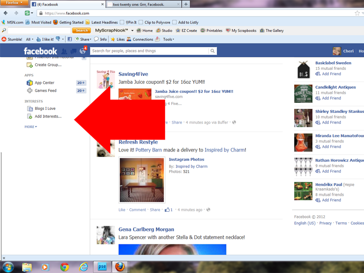 STEP #2 Go to your HOME page on facebook and click on the side bar where it says ADD INTEREST GROUPS.
