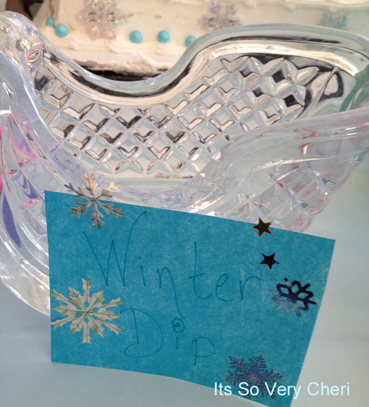 #1-The cake– We pulled out her frozen characters that she got for Christmas. I decided to do a Winter Wonderland cake BUT there were no icy trees left in the craft stores so I got ice cream cones, covered them in frosting and rolled them in coconut. I picked up some jeweled picks and those became my trees. Her candles are silver so they look icy. We had Target do the cake and I just had white on white and had them add the snowflake rings. I added the “Sixlet” turquoise chocolate balls and we got edible glitter and edible dust and little snowflakes.