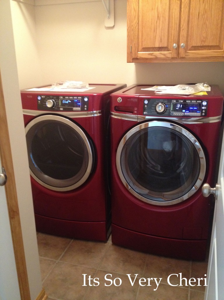 I used red twine for a pop of color to go with these beauties. It is actually fun doing laundry and walking into the laundry room and seeing this bright cheery color.