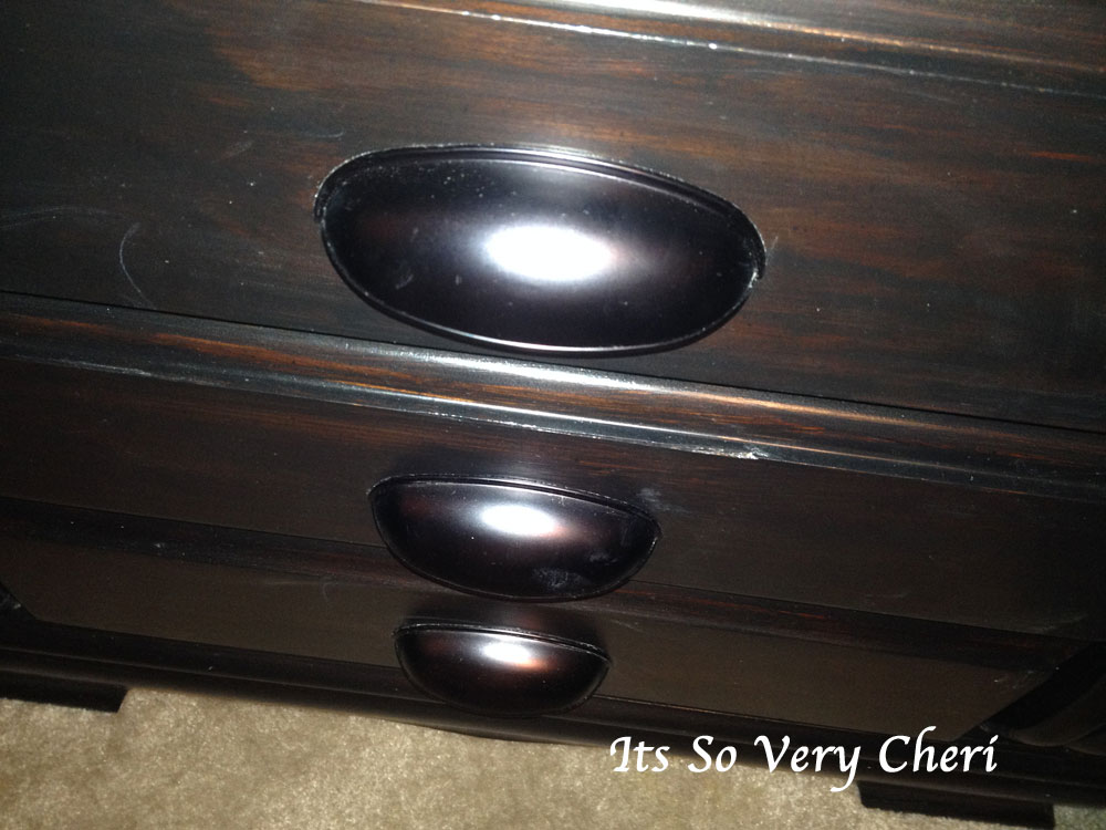 His is a dark finish with Oil Rubbed Bronze pulls.